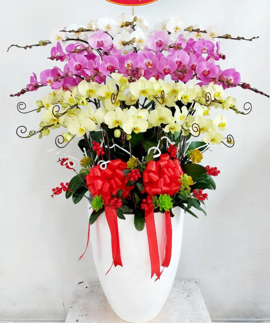 Chậu Lan Hồ Điệp Đa Sắc - Hoa Lan Hải Phòng chuyên cung cấp Chậu hoa lan hồ điệp đa sắc được ghép pha lẫn nhiều màu thích hợp cho trưng bày văn phòng, hội nghị và biếu tặng nhận dịp sự kiện quan trọng hoặc các dịp lễ tết.