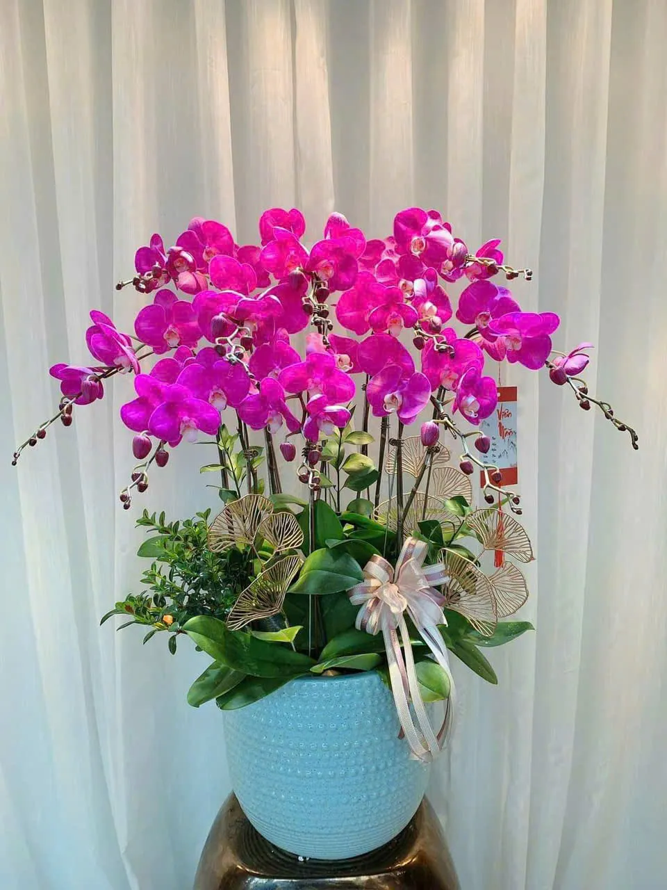 Lan hồ điệp tím chúc mừng là chậu hoa chúc mừng mang nét đẹp sang trọng. Ý nghĩa của sự may mắn, phát đạt của màu tím hoa hồ điệp. Chậu lan hồ điệp tím cũng là món quà hoàn hảo để quý khách tặng cho đối tác làm ăn hay sếp trong các sự kiện lớn…