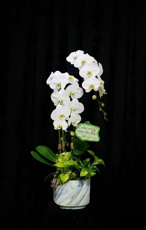 Lan hồ điệp không chỉ mang vẻ đẹp và hương thơm mà mỗi màu hoa lại mang một ý nghĩa khác nhau. Vì vậy một bó hoa lan tặng sinh nhật, nhất là một bó hoa lan hồ điệp dành tặng cho bạn bè, người thân yêu hay đối tác là một món quà vô cùng ý nghĩa. Nếu bạn đang tìm kiếm những mẫu chậu lan hồ điệp tươi đẹp làm quà tặng ở Hải Phòng thì hãy cùng Hoa Lan Hải Phòng tham khảo những Mẫu Chậu Lan Hồ Điệp Màu Trắng dưới đây.