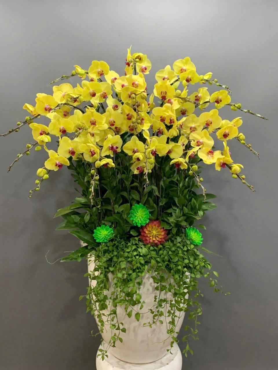 Chậu Lan Hồ Điệp Vàng Hải Phòng được thiết kế và ghép bởi Shop Hoa Lan Hải Phòng. Hoa lan hồ điệp Vàng từ lâu đã trở thành biểu tượng của sự sang trọng và đẳng cấp. Với cánh hoa mỏng manh nhưng quyến rũ, lan hồ điệp Vàng không chỉ đẹp về hình thức mà còn mang nhiều ý nghĩa tinh tế. Chậu hoa lan hồ điệp màu Vàng thường được chọn làm quà tặng trong các dịp quan trọng hoặc dùng để trang trí không gian sống, làm việc, thể hiện sự thịnh vượng và may mắn.