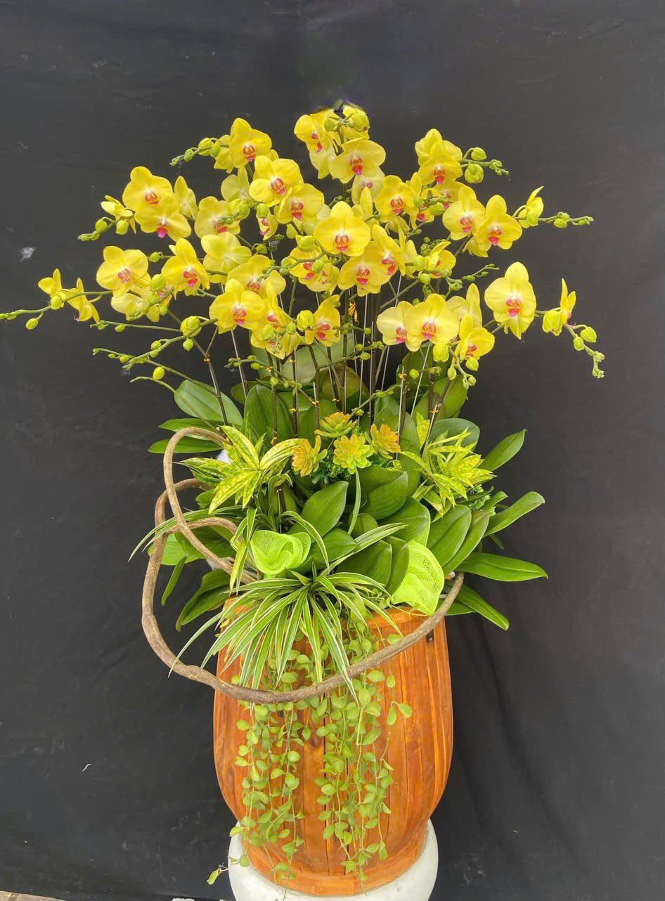 Chậu Lan Hồ Điệp Vàng Hải Phòng được thiết kế và ghép bởi Shop Hoa Lan Hải Phòng. Hoa lan hồ điệp Vàng từ lâu đã trở thành biểu tượng của sự sang trọng và đẳng cấp. Với cánh hoa mỏng manh nhưng quyến rũ, lan hồ điệp Vàng không chỉ đẹp về hình thức mà còn mang nhiều ý nghĩa tinh tế. Chậu hoa lan hồ điệp màu Vàng thường được chọn làm quà tặng trong các dịp quan trọng hoặc dùng để trang trí không gian sống, làm việc, thể hiện sự thịnh vượng và may mắn.