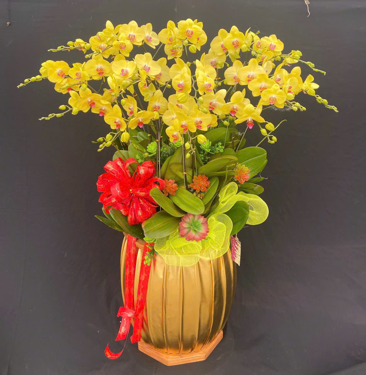 Chậu Lan Hồ Điệp Vàng Hải Phòng được thiết kế và ghép bởi Shop Hoa Lan Hải Phòng. Hoa lan hồ điệp Vàng từ lâu đã trở thành biểu tượng của sự sang trọng và đẳng cấp. Với cánh hoa mỏng manh nhưng quyến rũ, lan hồ điệp Vàng không chỉ đẹp về hình thức mà còn mang nhiều ý nghĩa tinh tế. Chậu hoa lan hồ điệp màu Vàng thường được chọn làm quà tặng trong các dịp quan trọng hoặc dùng để trang trí không gian sống, làm việc, thể hiện sự thịnh vượng và may mắn.