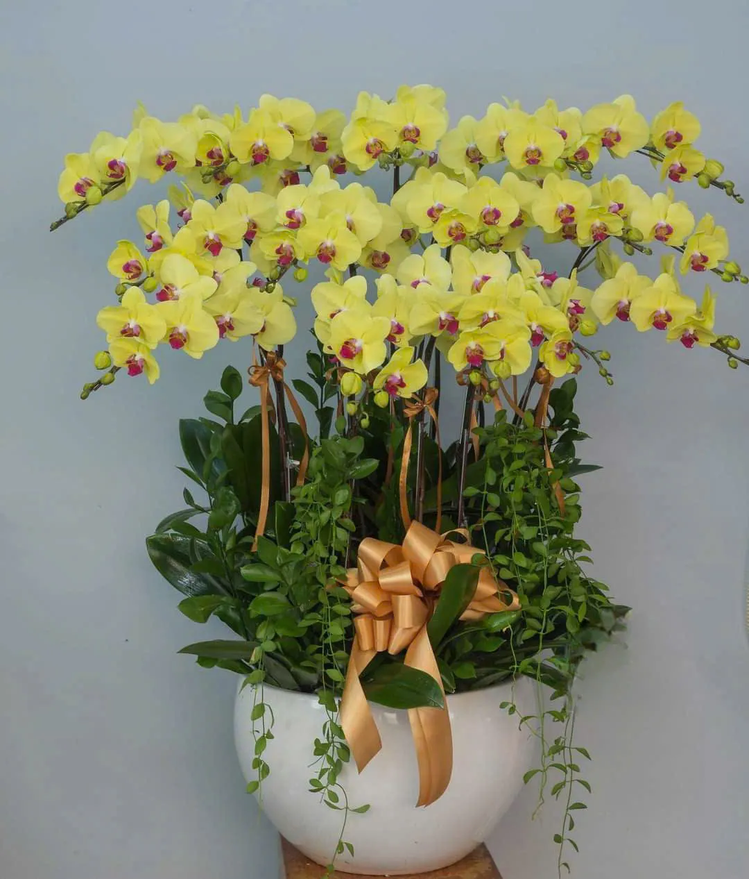 Màu vàng của cánh lan cũng mang lại không khí ấm cúng, hạnh phúc cho gia đình bạn. Đó sẽ là món quà ý nghĩa để tặng bạn bè, người thân của bạn.