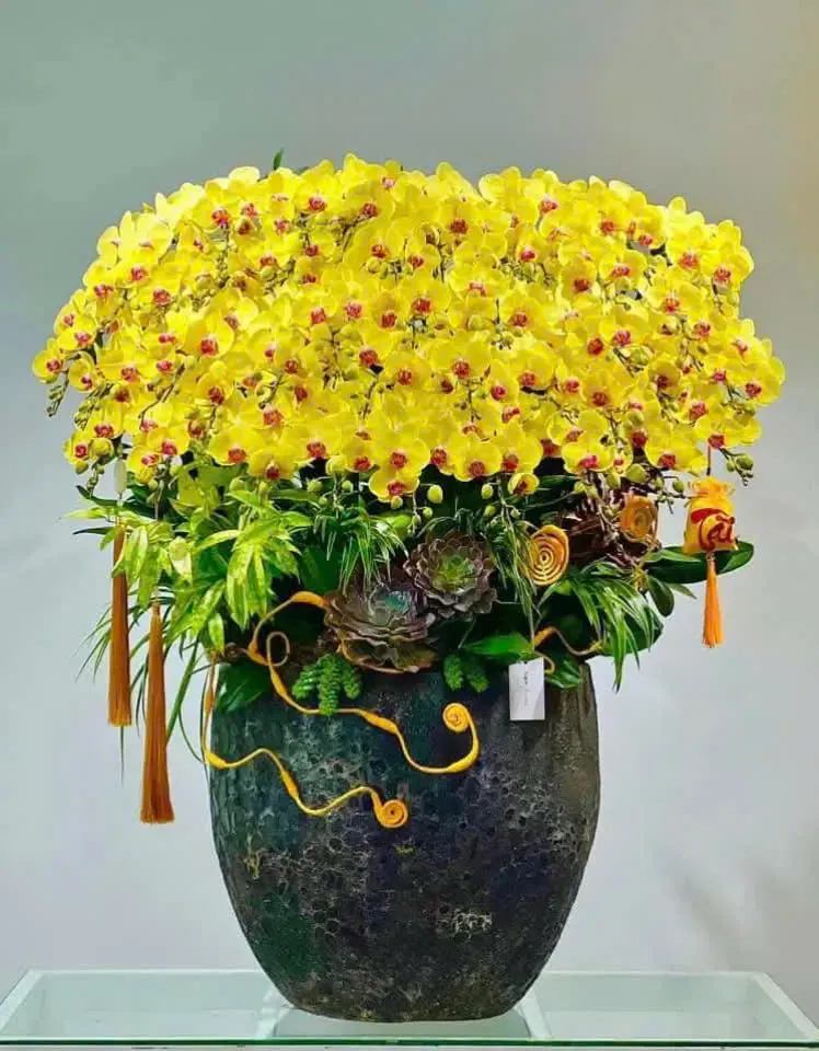 Chậu hồ điệp vàng mang theo nắng xuân trang trí cho ngôi nhà của bạn thêm quyến rũ. Màu vàng quyến rũ như sưởi ấm căn nhà bạn trong những ngày giá rét.